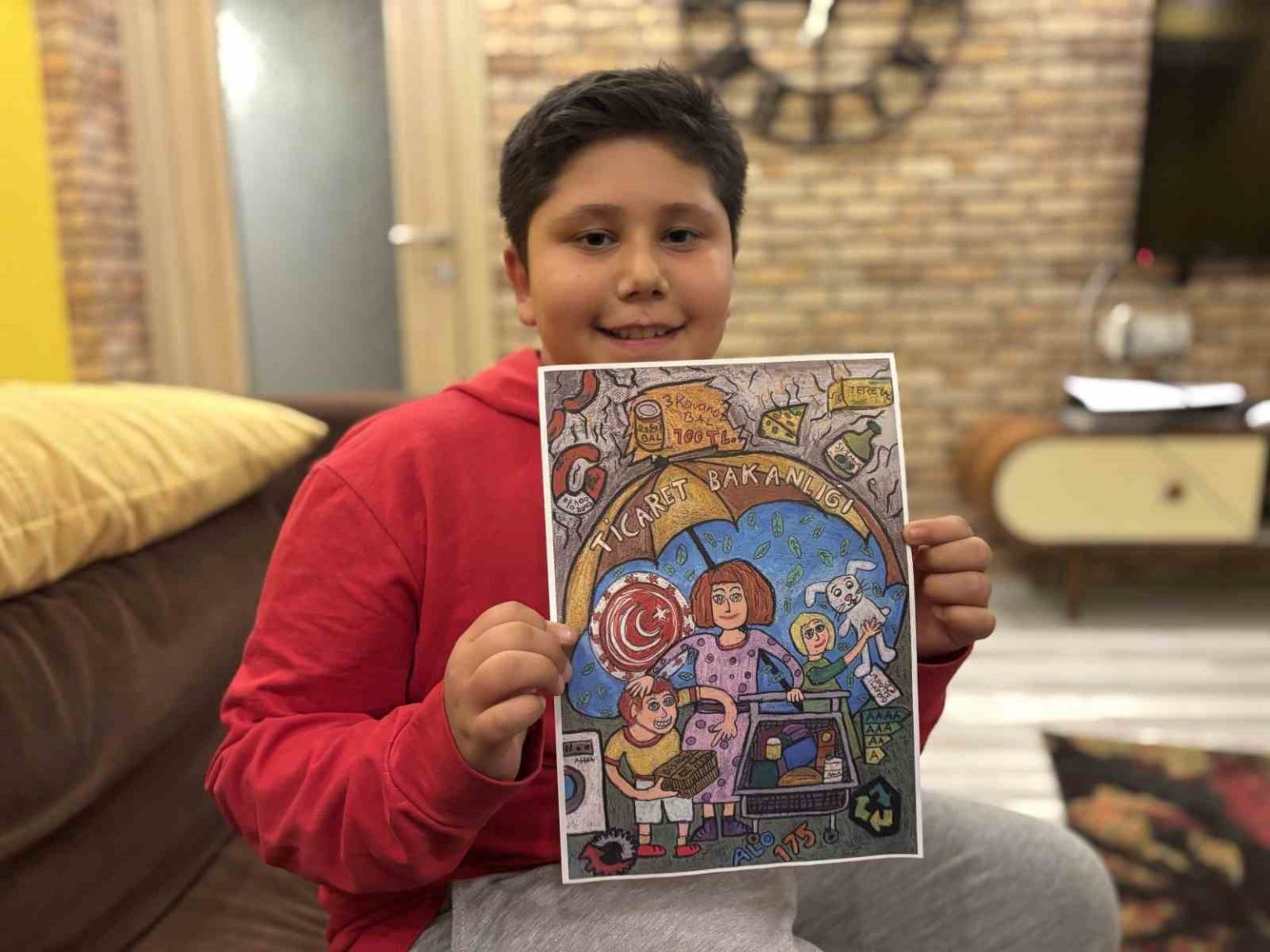 Ticaret Bakanlığı’nın 19 Aralık 2025 tarihinde gerçekleştirdiği 28. Geleneksel Tüketici Ödülleri Töreni’nde, bir ödül de Bolu’ya verildi. Ticaret Bakanlığı’nın bilinçli tüketim ve tüketici hakları konularında bilgilendirmek, bu alanda farkındalık oluşturmak ve sanatsal çalışmaları teşvik etmek amacıyla düzenlediği yarışmaya ülke genelinden bin 600 çocuk katıldı. Ticaret Bakanlığı’nın düzenlediği resim yarışmasında, 50. Yıl Ortaokulu öğrencisi 11 yaşındaki Uygar Çetin birinci olarak Bolu’yu gururlandırdı. Çetin, ödülünü Ticaret Bakanı Prof. Dr. Ömer Bolat’tan aldı. Uygar Çetin’in yaptığı eser, binlerce eserin arasından birinci seçildi. Annesi ve Babasının da resim öğretmeni olduğu Uygar Çetin, bu tür yarışmalara katılmaya devam edeceğini söyledi. Çıkardığı eserde vurguladığı bilinçli tüketici kişiliğinin nasıl bir insan olmasından bahseden Uygar Çetin, “Bilinçli tüketici olmakla ilgili konular araştırıp, konulardan esinlenip, eski resimlere de bakarak bir eser ortaya çıkardım. Bilinçli tüketicinin nasıl bir insan olduğu ve nasıl bilinçli tüketici olacağımızı gösteriyor” dedi.