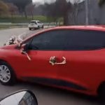 Seyir halindeki aracı fark eden diğer sürücüler, o anları cep telefonlarıyla kayda aldı. Kısa sürede sosyal medyada da paylaşılan görüntüler, çok sayıda kullanıcı tarafından beğeni ve yorum aldı.