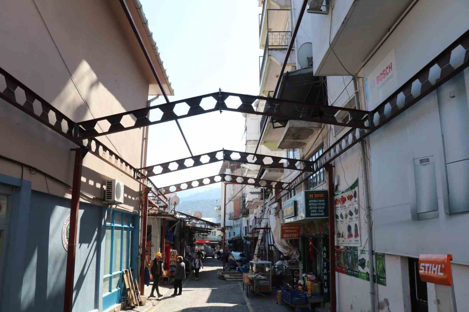 Bozdoğan Belediyesi, Simit Pazarı Sokağı’nda yenileme çalışmalarını başlattı. Proje ile pazarcı esnafı olumsuz hava şartlarından korunacak, sokak modern ve canlı bir yaşam alanına dönüşecek.