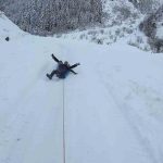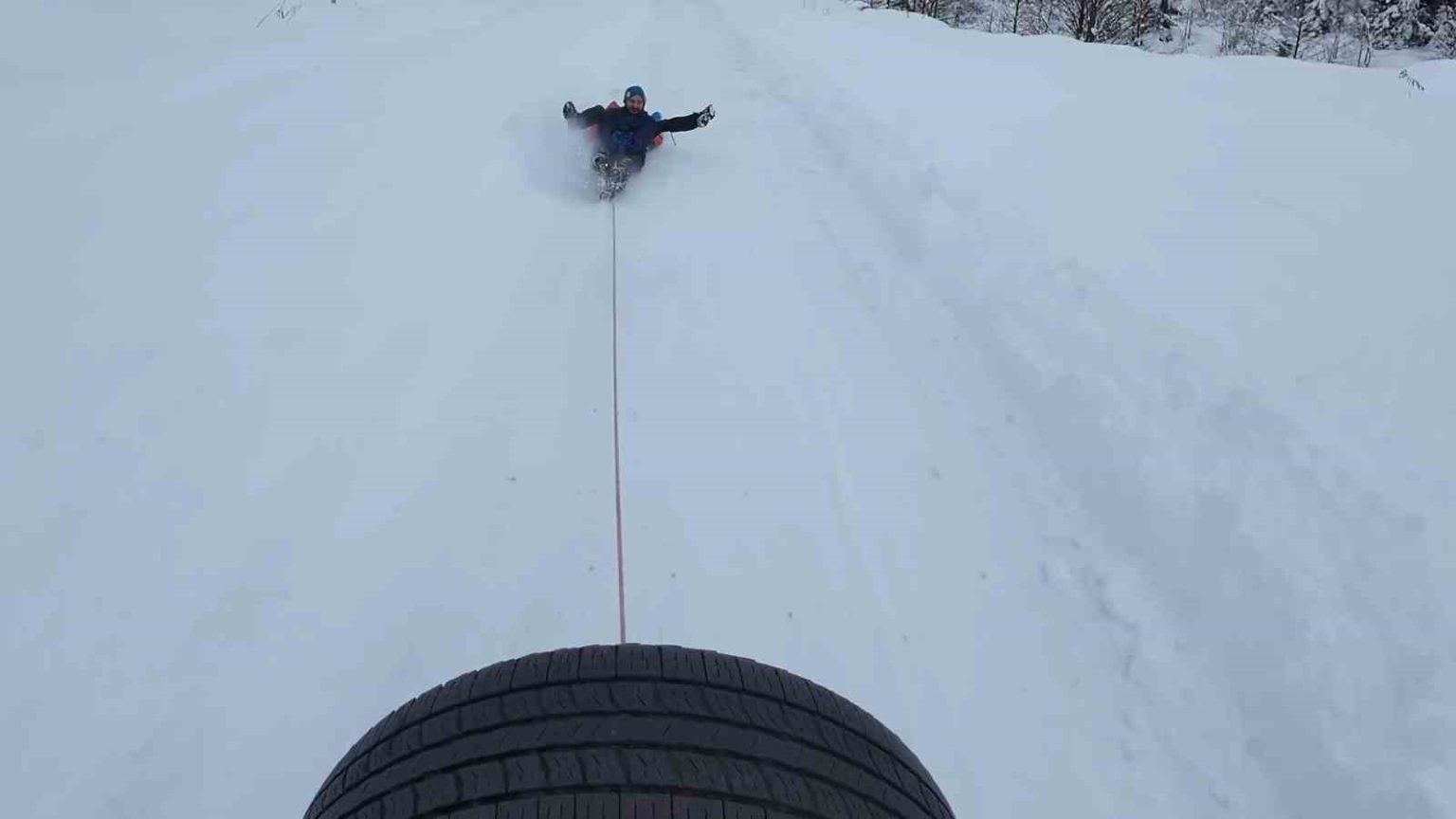 Rize’de şiddetli kar yağış kenti beyaza bürüdü. Yaylalarda 1 metreyi aşan kar fotoğraf tutkunlarına kartpostallık görüntüler verirken adrenalin tutkunlarına da keyifli dakikalar yaşattı. Adrenalin tutkunu Oğuz Bal ve Volkan Aytaç isimli 2 arkadaş, yağan karı fırsat bilerek Rize’nin İkizdere ilçesindeki Sivrikaya Yaylası’na çıktı. 4×4 araçlarının arkasına bir ip vasıtası ile branda bağlayan 2 kafadar, yanlarında bulunan diğer arkadaşlarından aracı sürmesini rica etti. Brandanın üzerinde oturan 2 kafadar arabanın da kendilerini çekmesiyle karda kayarak keyifli anlar yaşadı. Sürücü olan arkadaşlarına ’biraz yavaş gitsene vicdansız’ diye seslenseler de bununla da yetinmeyen ikili bu kez brandanın üzerinde ayağa kalktı. Ayakta da kaymayı başaran Aytaç ve Bal’ın o anları renkli görüntülere sahne oldu.