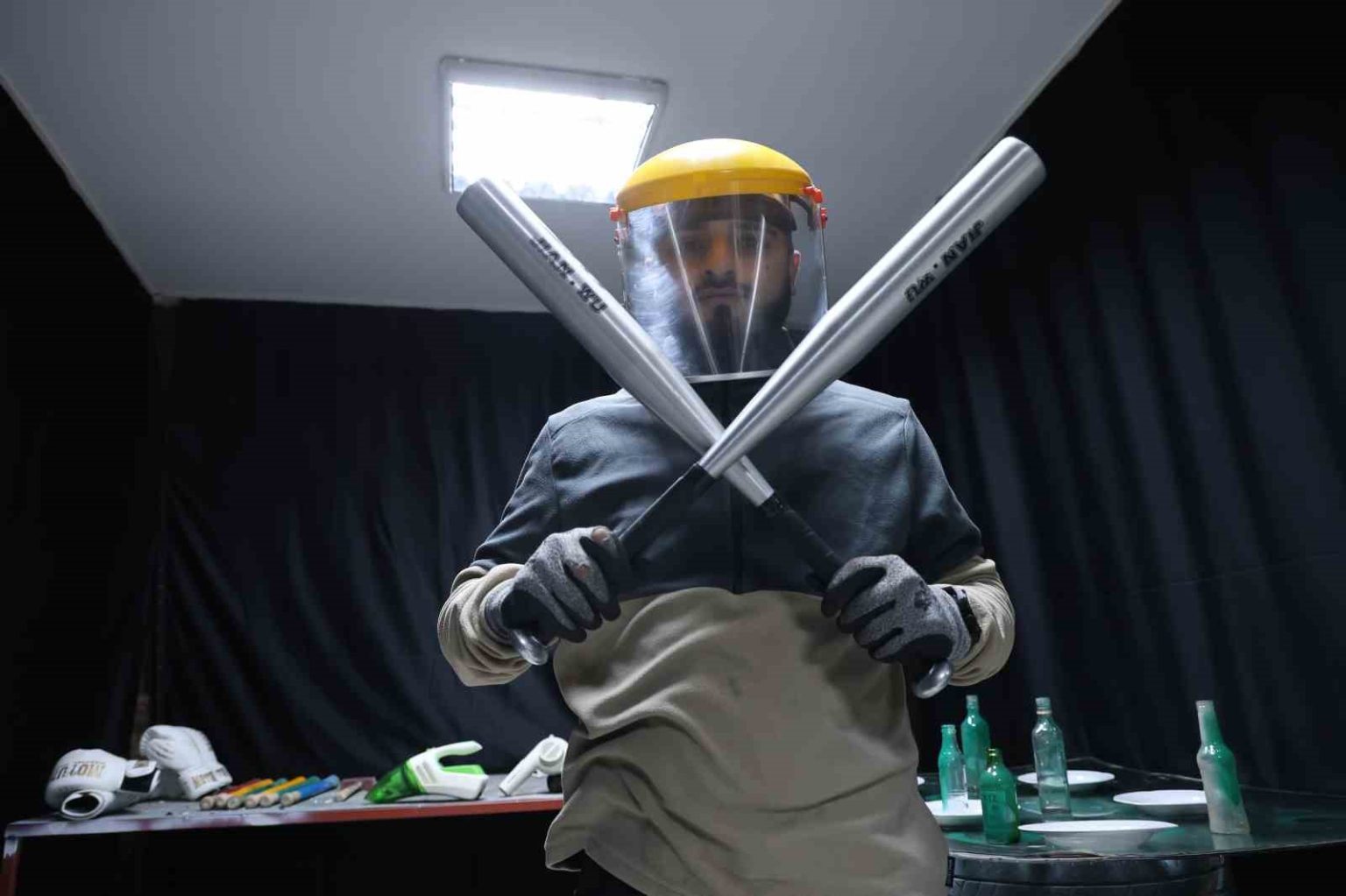 Etrafı toplayıp yeni eşyalar yerleştirdiklerini belirten Durmaz, “Nano teknoloji elbiseler. İçeride cam parçalanıyor. Göze veyahut vücudu parçalamasın diye bunlar var. Müşteriler bunları giyip öyle içeri giriyorlar. Aslında bende de biraz öfke problemi vardı. İlkin kendimde denedim. İşe yaradığını gördüm. Ondan sonra dedim ki bu iş tutar” ifadelerini kullandı.