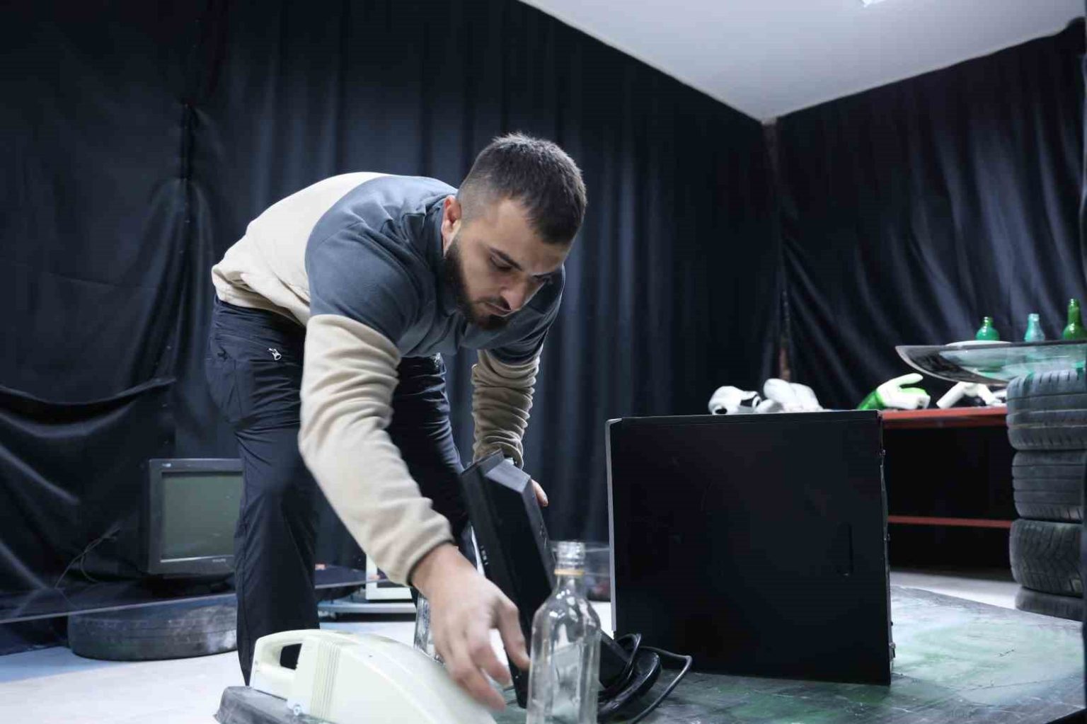 Araba camı, damperli camlar, şişeler, porselen takımları, televizyon ve bilgisayarların olduğunu kaydeden Durmaz, “Elektrikli süpürge, davlumbaz, saç kurutma makinesi, buzdolabı, çamaşır makinası, gitar, aklınıza ne gelirse burada var. Evde kendi eşyalarınızı kıramıyorsunuz. Sinirli ve öfkelisiniz. Biz, burada evinizi dayayıp döşüyoruz. Ona göre kırıp döküyorsunuz. Örneğin adam gitarına kıyamıyor. Biz, onu uygun bir maliyete alıp uygun bir şekilde ona veriyoruz, o da kırıyor” diye konuştu.