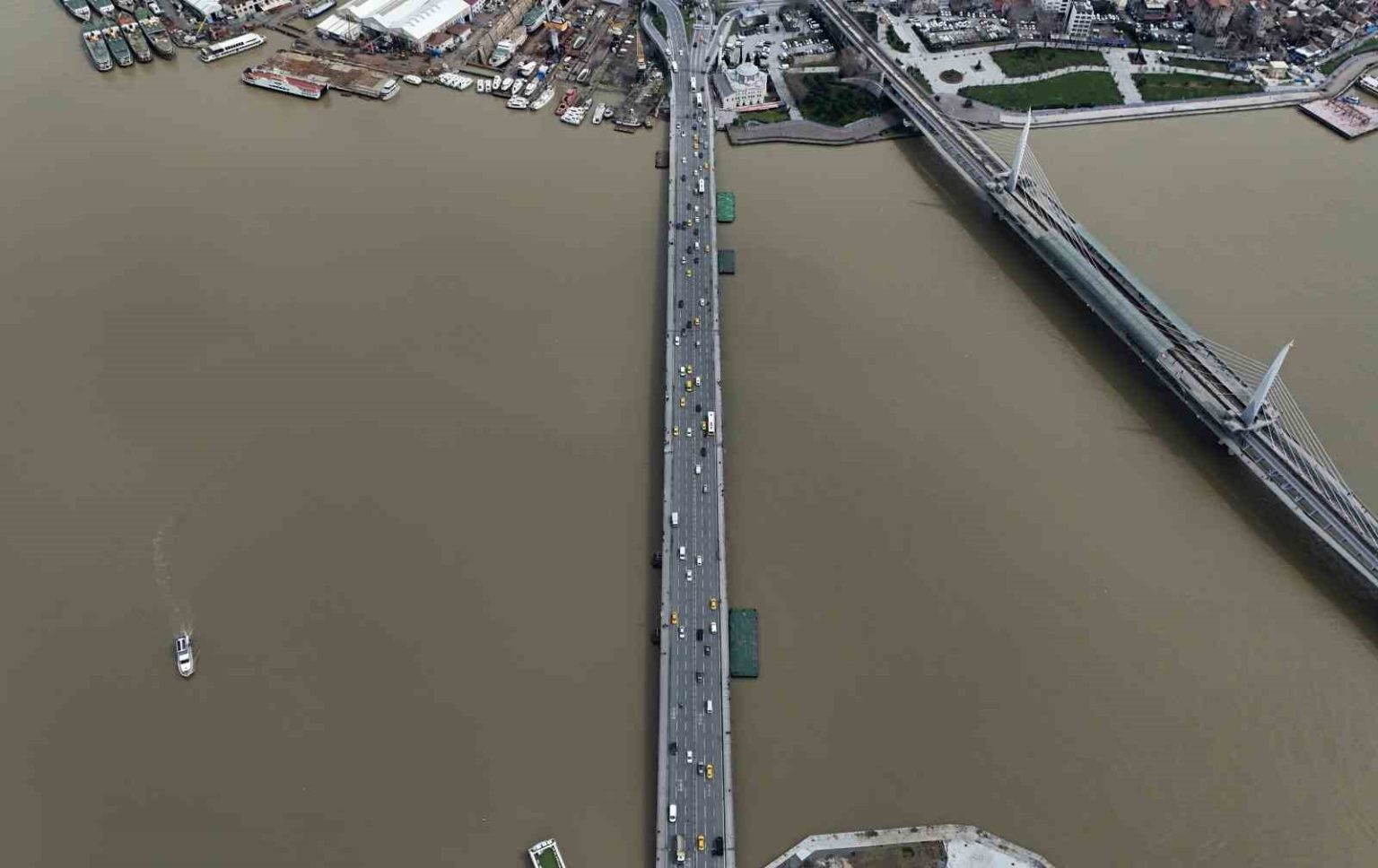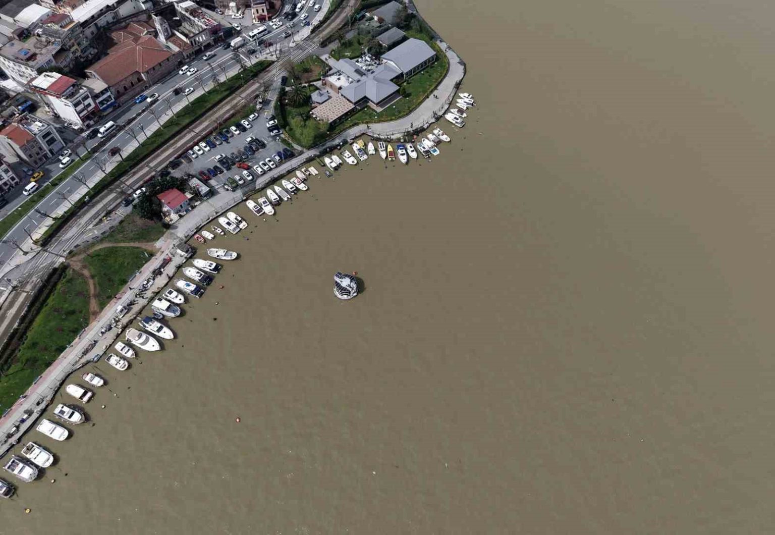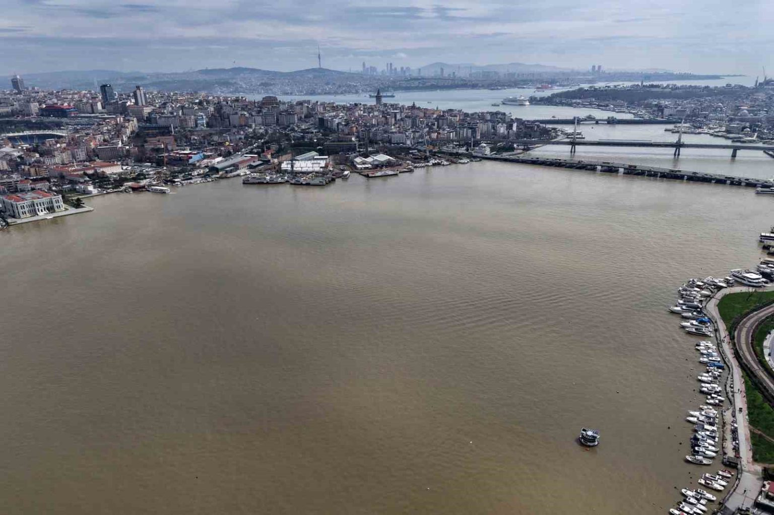 İstanbul`da etkili olan sağanak yağış sonrası dereler ve kanalizasyonlardan gelen çamurlu su, Haliç ile buluşmasıyla suyun rengi kahverengiye dönüştü. Çamura bulanan Haliç havadan görüntülendi.