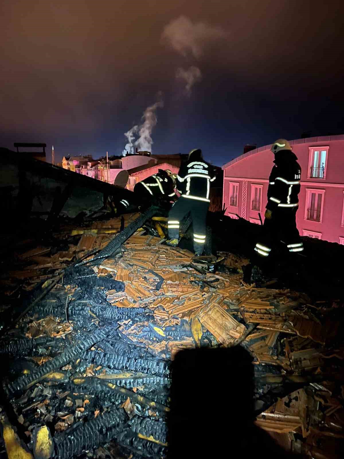 Yangında apartmanın çatısı tamamen yanarak kullanılmaz hale gelirken yangının çıkış nedeni araştırılıyor.