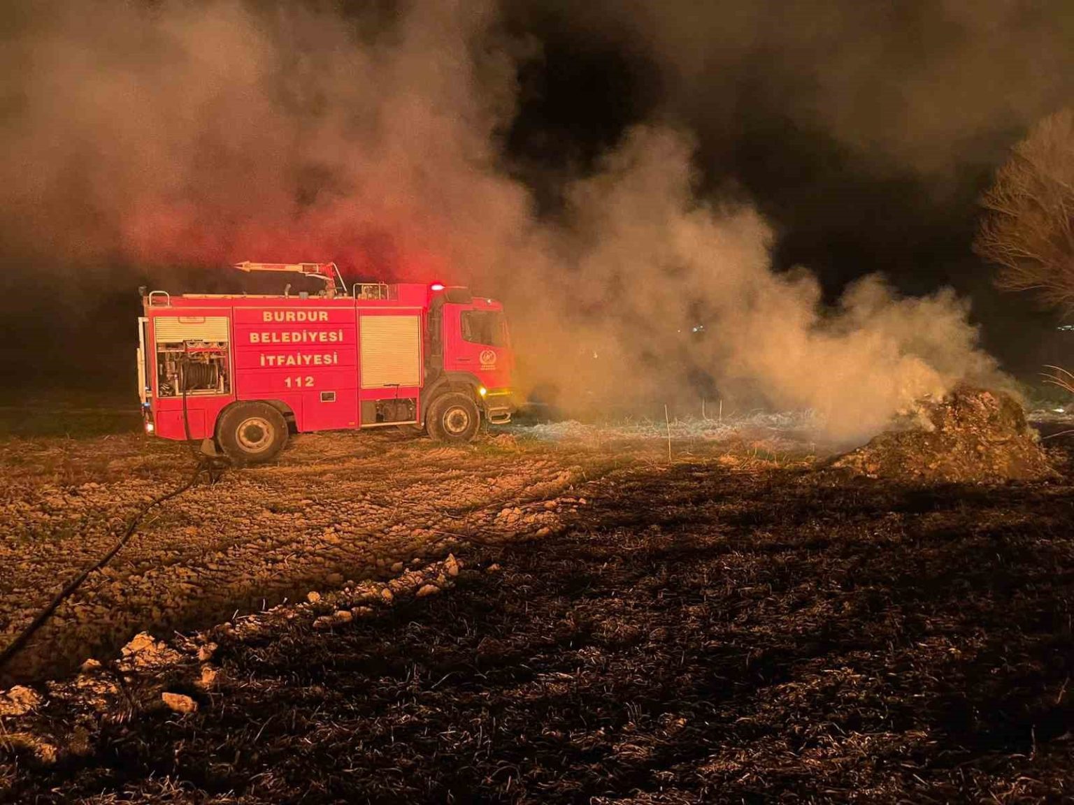 Burdur’da gece saatlerinde sazlık alanda çıkan yangın itfaiye ekiplerinin uzun uğraşları sonucu kontrol altına alınarak söndürüldü.