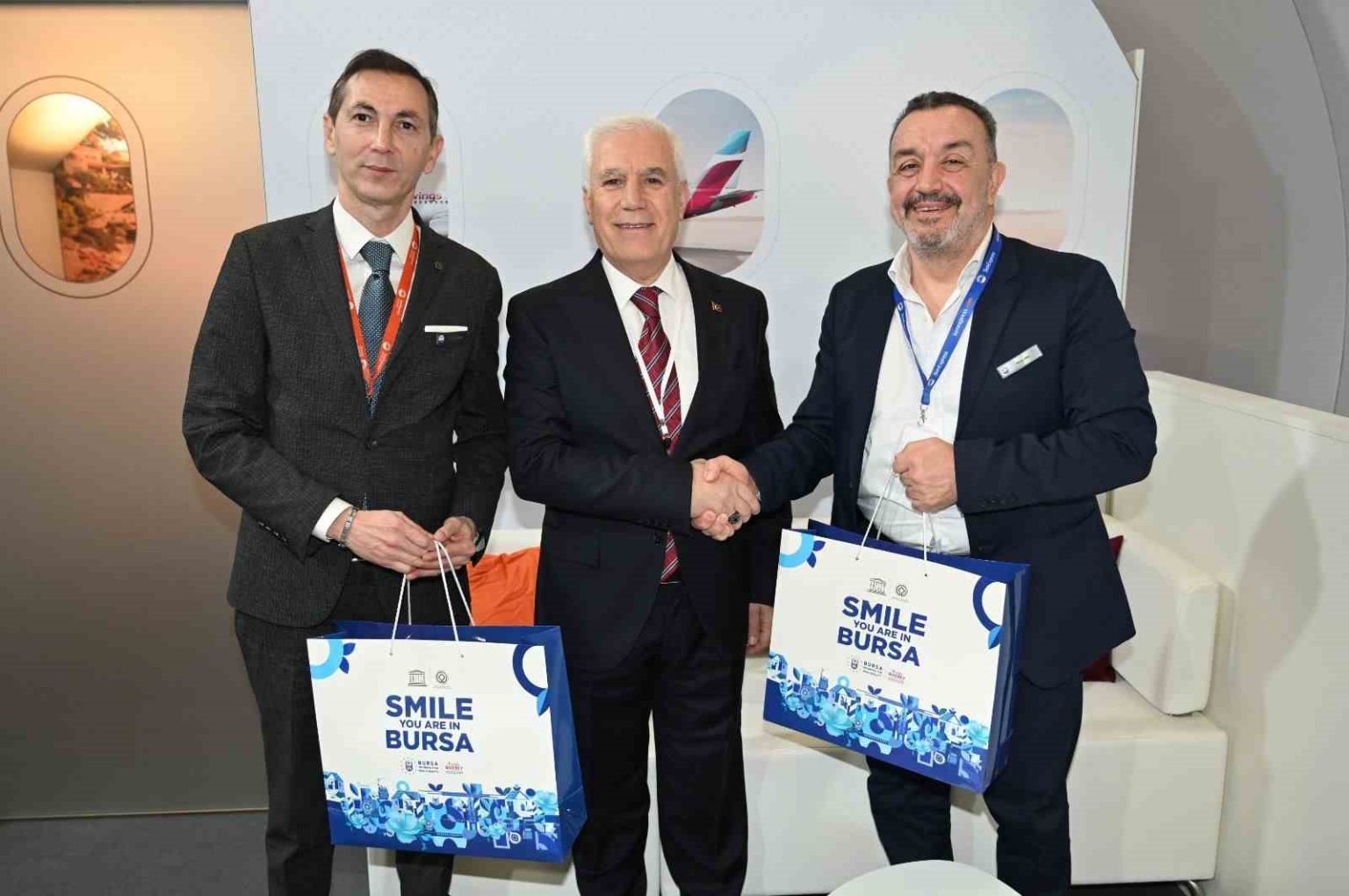 ITB Berlin 2026’da Bursa Büyükşehir Belediyesi’nin standı da büyük ilgi gördü. ‘Her Gülümseme Bir Hikâye Anlatır’ kampanyasıyla organizasyonda yer alan Bursa Büyükşehir Belediye Başkanı Mustafa Bozbey’in liderliğindeki heyet, 3-5 Mart tarihleri arasında yerli ve yabancı sektör temsilcileriyle bir araya gelerek Bursa’nın turizm potansiyelini anlattı. Fuardaki diğer firmaların stantlarını da gezen Başkan Mustafa Bozbey, birebir görüşmeler gerçekleştirerek yapılabilecek iş birliklerini konuştu. Türk-Alman Ticaret ve Sanayi Odası Genel Sekreteri Okan Özoğul’u ve Türk-Alman İşverenler Derneği Başkanı Remzi Kaplan’ı da ziyaret eden Başkan Mustafa Bozbey, yapılabilecek iş birlikleri hakkında fikir alışverişinde bulunurken Bursaspor forması ve atkısı hediye etti.