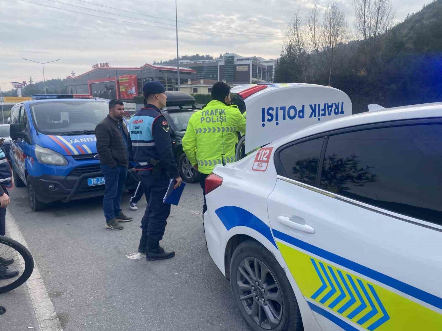 Jandarma ve trafik ekipleri, kazanın meydana geliş şeklinin belirlenmesi için olay yerinde inceleme yaptı.