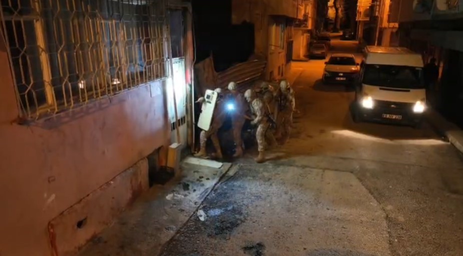 Bursa’da bin polis memurunun katıldığı dev uyuşturucu operasyonunda saatlerce havada kalan helikopter ve İHA’lar gökyüzünden tek tek tacirleri tespit edip yakalattı. Çatı ve teraslardaki kovalamacalarda anbean helikopter kameralarına yansıdı. Koç başlarıyla kapıları kırılıp girilen evlerde kombi içlerine saklanan uyuşturucu maddeler bile eğitimli narkotik köpekleri tarafından tek tek bulundu. Bursa Merkezli 4 ilde yapılan şok baskınlarda 102 kişi gözaltına alınırken adliyeye sevkedilen şahıslardan 84’ü tutuklandı.