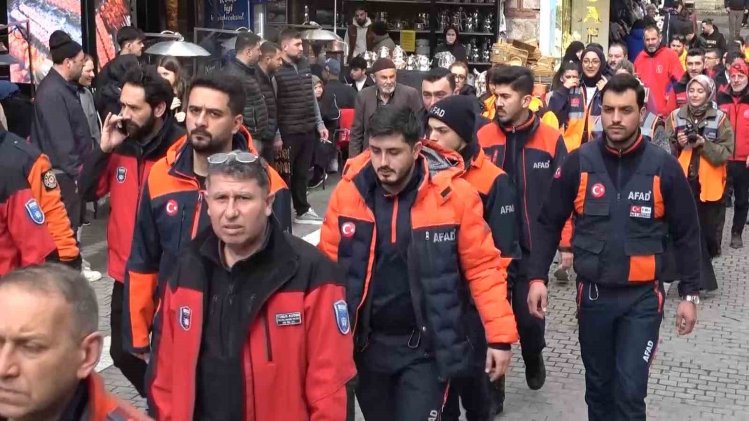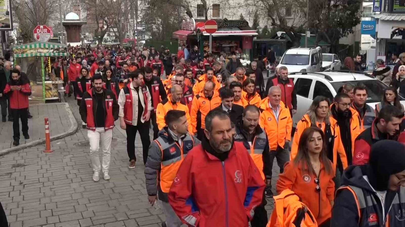 Bursa’da AFAD gönüllüleri ve yaklaşık 30 akredite arama kurtarma ekibi, 6 Şubat depremlerinde hayatını kaybedenler için sessiz yürüyüş düzenledi.