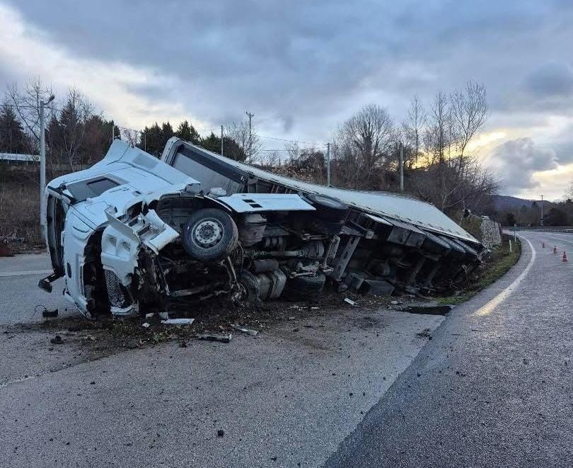 Kaza, saat 06.00 sıralarında Bursa Ankara karayolu üzeri İnegöl’ün kırsal Eskikaracakaya Mahallesi mevkiinde meydana geldi. Edinilen bilgiye göre, İnegöl’den Bozüyük istikametine seyir halinde olan Serhat U. (32) idaresindeki 06 FEY plakalı tır, sürücüsünün direksiyon hakimiyetini kaybetmesi sonucu devrildi.