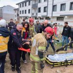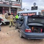 Çarpmanın etkisiyle ters dönen otomobilde sürücü A.B. ile yolcu konumunda bulunan öğrenciler S.B. (14), İ.Ş. (16), E.D. (15), B.A. (15), E.T. (16) ve M.D. (16) araçta sıkıştı.