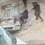 Bursa’nın İnegöl ilçesinde 14 yaşındaki ehliyetsiz sürücünün kontrolünden çıkan otomobilin park halindeki 3 araca çarptığı kazada 8 öğrenci yaralandı. Kaza anı güvenlik kamerasına yansıdı.