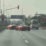 Bursa’da ultra lüks iki otomobilin hatalı şerit değiştirip kırmızı ışıkta geçtiği anlar kameralara yansıdı.