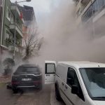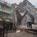 İş makinesinin binanın 3’üncü katına darbe vurmasıyla, geri kalan katları da yerle bir oldu. Sokak toz bulutuyla kaplanırken, vatandaşlar ilk defa böyle bir yıkım gördüğünü söyledi.