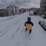 Kayak yaparken kendini kayda da alan vatandaş, karla kaplanan yollarda rahatlıkla ilerlediği anları sosyal medyada paylaştı. Görüntüler kısa sürede ilgi gördü.