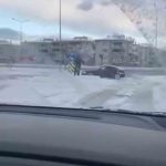 Kentte etkili olan kar yağışıyla birlikte kayganlaşan yollarda tehlikeli anlar yaşandı. Kar yağışını fırsat bilen bir sürücü, otomobiliyle kavşakta drift atarak trafik güvenliğini hiçe saydı. O anlar çevredeki bir vatandaş tarafından cep telefonu kamerasıyla kaydedildi.
