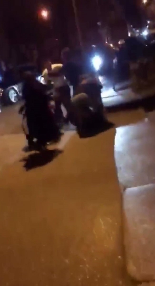 Cep telefonu kamerasına yansıyan görüntülerde, yolun sol tarafında yere düşen aile babasının darbedildiği, diğer tarafta ise anne ile grup arasında tartışma ve arbede yaşandığı anlar yer aldı. Olay sırasında çocukların korku dolu anlar yaşadığı görüldü.