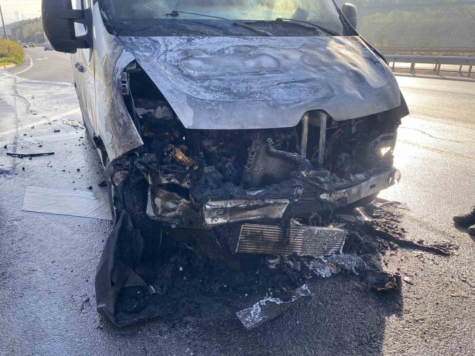 Olay yerine gelen itfaiye ekipleri kısa sürede yangını söndürdü ancak minibüs kullanılamaz hale geldi.