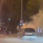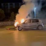 Bursa’nın Osmangazi ilçesinde Merinos Kavşağı’nda seyir halindeyken henüz bilinmeyen bir nedenle alev alan otomobil, itfaiye ekiplerinin müdahalesiyle söndürüldü.