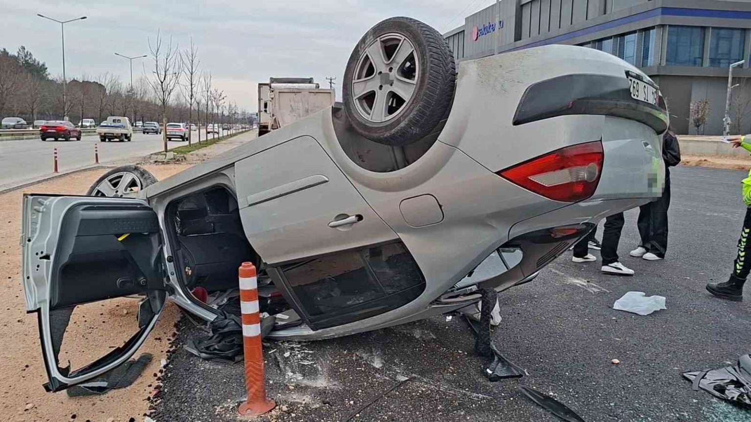 Bursa’da otomobil takla attı: Şans eseri yaralanan olmadı