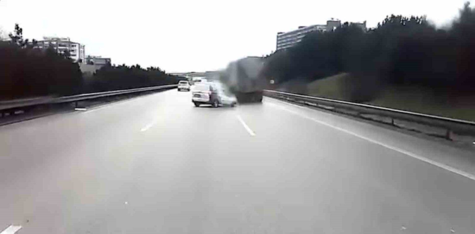 Herkesin yüreğini ağzına getiren anlar, bir kamyonun araç içi kamerasına saniye saniye yansıdı. Mudanya çıkış kavşağında seyir halindeki bir ticari kamyonet, yağmur sebebiyle ıslak olan asfaltta direksiyon hakimiyetini kaybedince bariyerlere çarptı. Daha sonra kendi ekseni etrafında dönmeye başlayan kamyonet, yol ortasında dönerek durabildi.