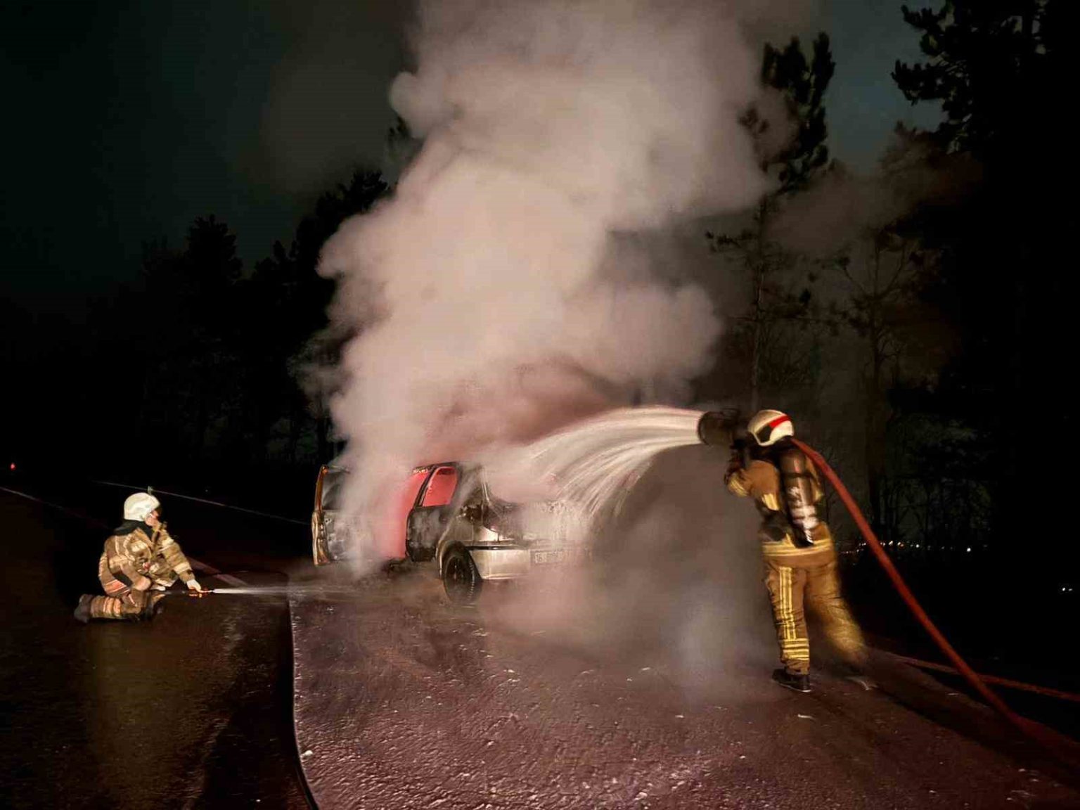 Bursa’da seyir halindeki otomobil alev alev yandı