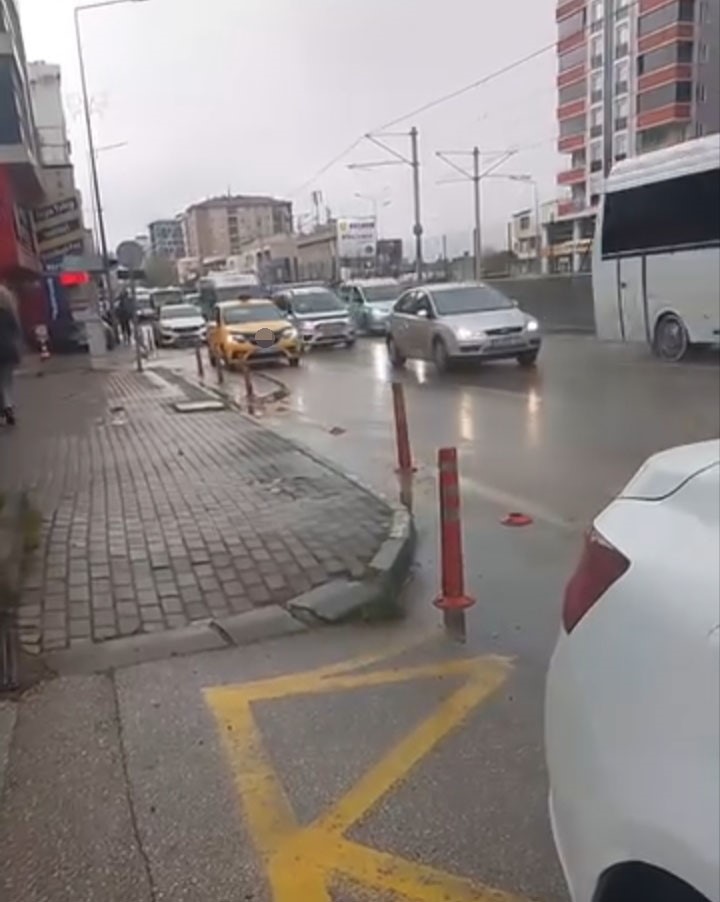 Bursa’da geri geri ilerleyen taksi sürücüsü tehlike saçtı o anlar cep telefonu kamerasıyla kaydedildi.