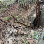 Bursa’nın Osmangazi ilçesinde etkili olan yoğun yağışlar nedeniyle bir binanın yanında bulunan istinat duvarı çöktü. Duvarın yıkılmasıyla birlikte bazı ağaçlar kökünden sökülerek binaya doğru devrildi.