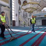 Camilerin iç mekanlarını baştan aşağı temizleyen ekipler, halıları da hijyen kurallarına uygun şekilde dezenfekte ediyor. Kapı, pencere ve ayakkabılık gibi cami içerisindeki ortak kullanım alanlarını da titizlikle temizleyen ekipler, özel olarak sıkılan hoş kokularla camileri ibadete hazır hale getiriyor.