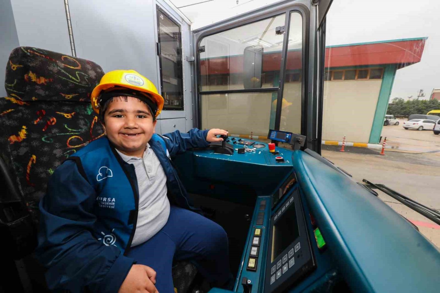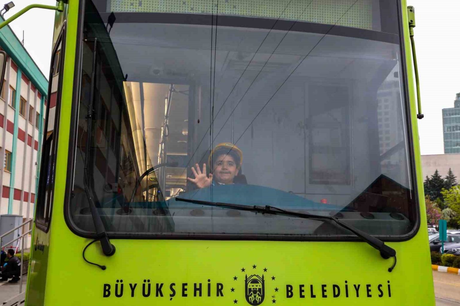23 Nisan Ulusal Egemenlik ve Çocuk Bayramı’nda tüm makamlar sembolik olarak çocuklara devredilirken, Bursa’da tren sürme hayali olan 7 yaşındaki Ali Asaf İzci, vatman koltuğuna oturarak metroyu sürme deneyimi yaşadı.