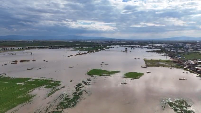 Yaşanan su taşkınları, hem tarım üretimini hem de kırsal yaşamı olumsuz etkilerken, bölgedeki son durum dron görüntüleriyle gözler önüne serildi.