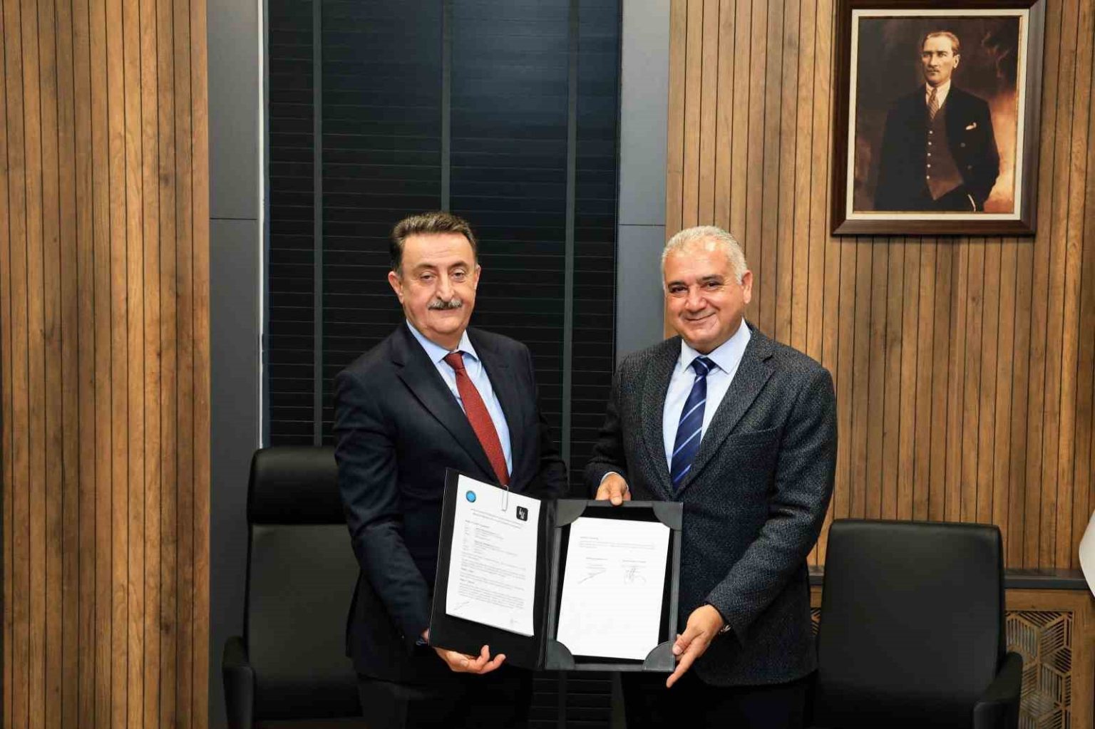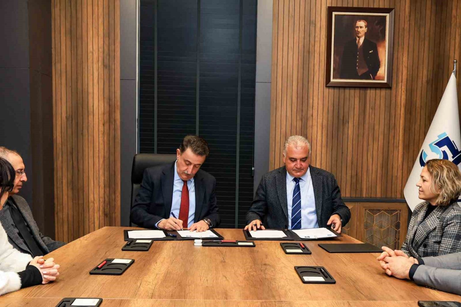 Rektörlük binasında gerçekleştirilen törene; Rektör Yardımcısı Prof. Dr. İrfan Kırıştıoğlu, Güzel Sanatlar Dekanı Prof. Dr. Ali Sait Liman, Dekan Yardımcıları Doç. Dr. İbrahim İ. Öztahtalı ve Dr. Öğr. Üyesi Pelin Elcik Yorgancıoğlu ile Bize Proje Geliştirme A.Ş. Yönetim Kurulu Başkanı Erdoğan Demir ve Grup Direktörü Nazife Uslu Mumcu katıldı.