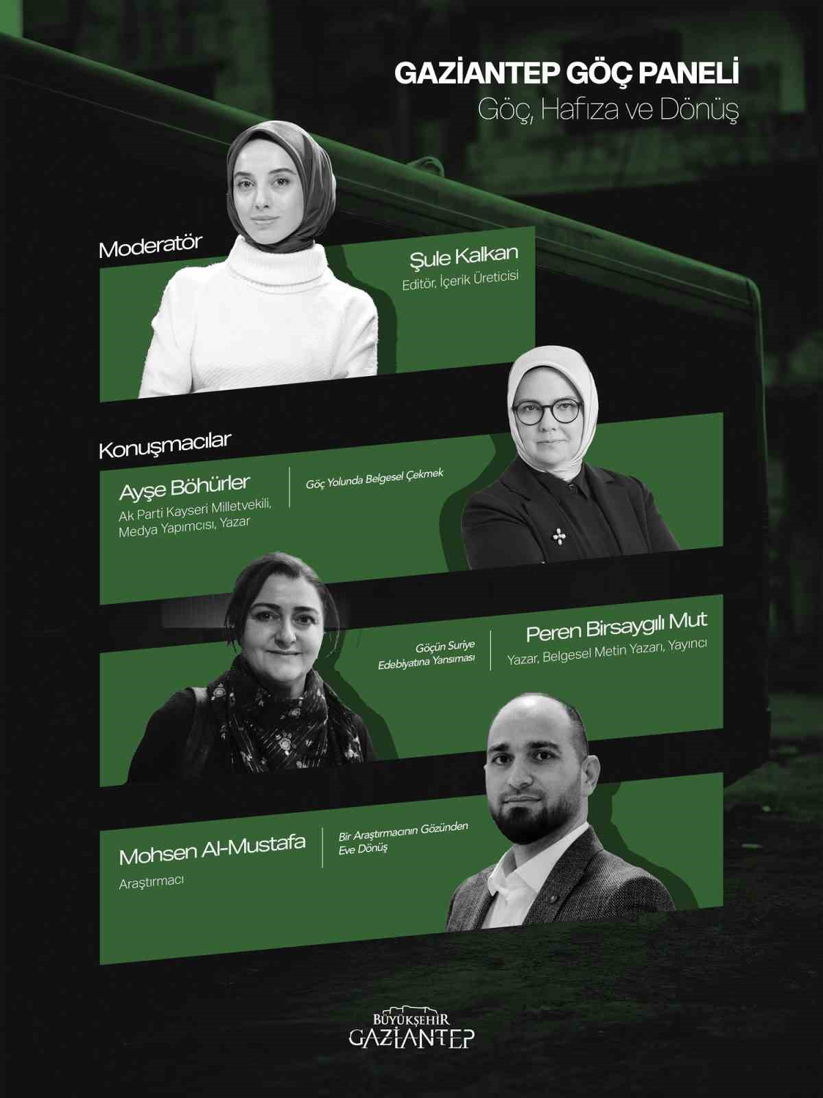 Panel, editör Şule Kalkan’ın moderatörlüğünde AK Parti Kayseri Milletvekili, medya yapımcısı, yazar Ayşe Böhürler’in, “Göç Yolunda Belgesel Çekmek” konuşmasıyla başlayacak. Sonrasında yazar, belgesel metin yazarı, yayıncı Peren Birsaygılı Mut tarafından, “Göçün Suriye Edebiyatına Yansıması”, araştırmacı Mohsen Al-Mustafa ise “Bir Araştırmacının Gözünden Eve Dönüş” konulu konuşma başlıklarını konuşacak.