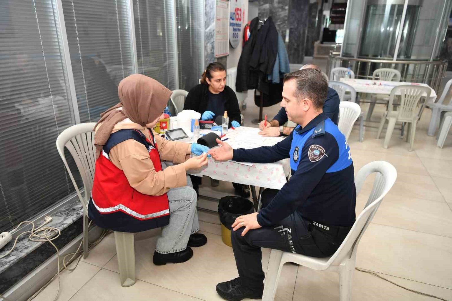 Kayseri Büyükşehir Belediyesi ve Erciyes Üniversitesi (ERÜ) Kan Merkezi iş birliği ile Büyükşehir Belediyesi Hizmet Binası’nda başlatılan kan bağışı kampanyasında, Büyükşehir Belediyesi bürokratları ve belediye personeli kan bağışında bulundu.