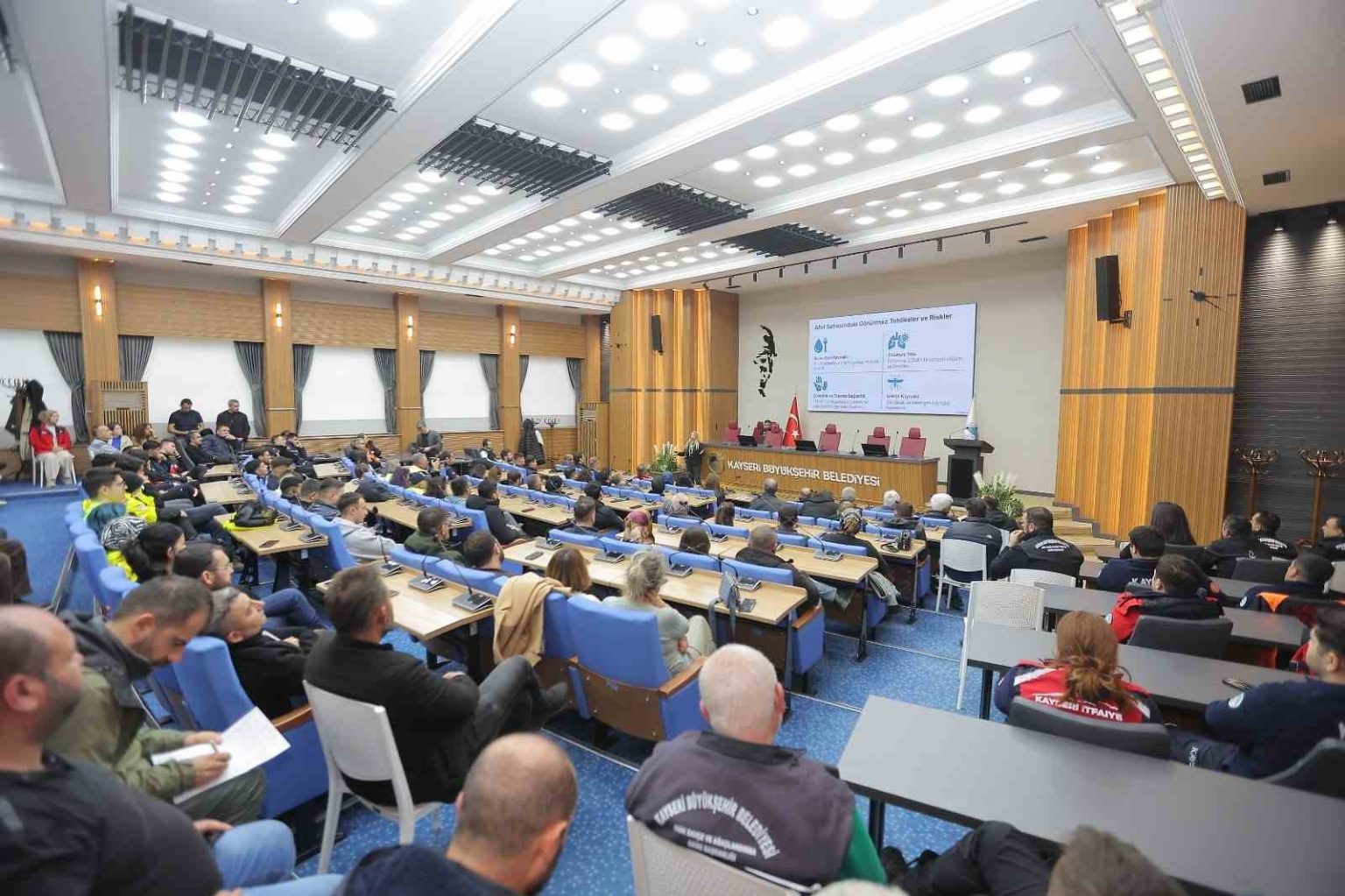 Yerel yönetim hizmetlerinin vatandaşlara etkin ve kaliteli bir şekilde aktarılması amacı başta olmak üzere personelinin çok yönlü gelişimini hedefleyen Kayseri Büyükşehir Belediyesi, kurum içi eğitim seminerlerine devam ediyor. Bu eğitim seminerleri çerçevesinde Büyükşehir Belediyesi Afet İşleri ve Risk Yönetimi Daire Başkanlığı ile Erciyes Üniversitesi tarafından ‘Arama Kurtarma Personelinin Afetlerde Bulaşıcı Hastalıklardan Korunması Eğitimi’ düzenlendi.