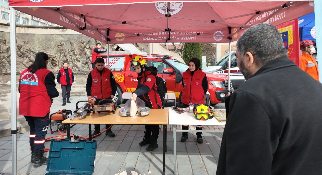 Kayseri Büyükşehir Belediyesi İtfaiye Daire Başkanlığı Eğitim Birimi Personeli Ayşe Bostan da etkinliğe ilişkin yaptığı açıklamada, deprem sırasında kullanılan ekipmanları vatandaşlara tanıttıklarını belirterek, uygulamalı anlatımlarla afet bilincini arttırmayı amaçladıklarını ifade etti.