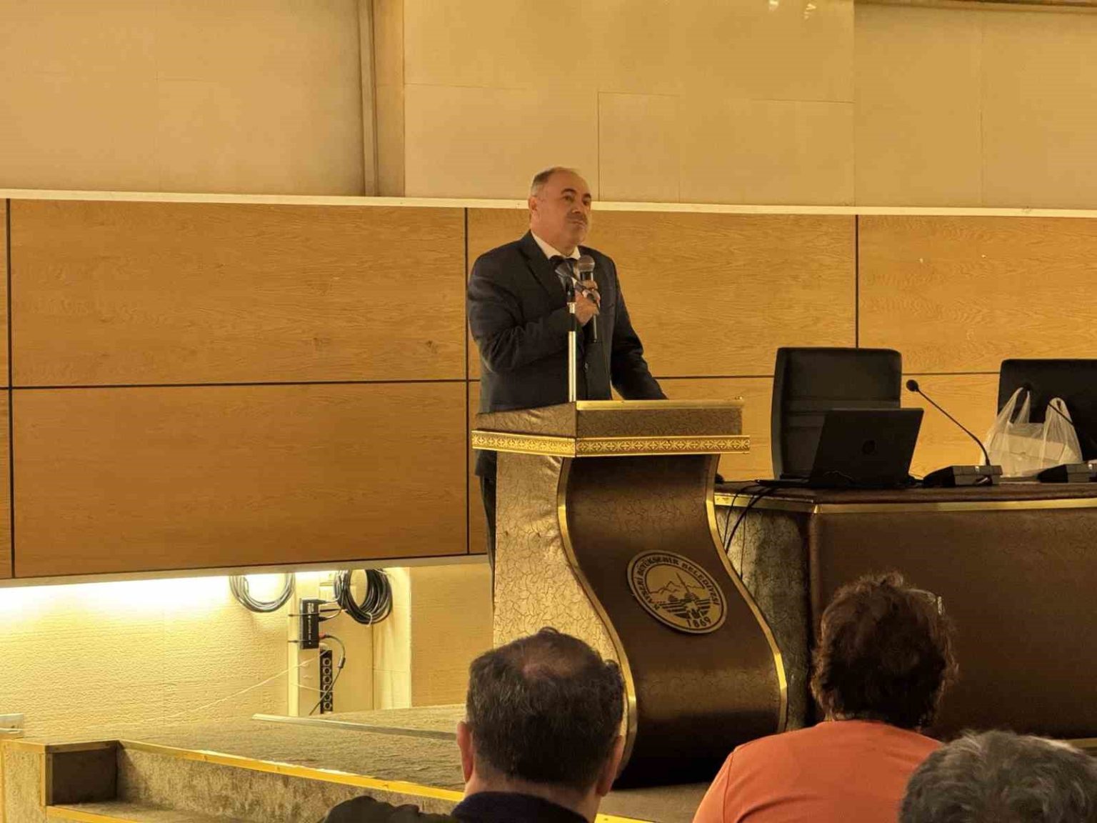 Programda, Park Bahçeler İdari İşler Şube Müdürü ve Hobi Bahçeleri Şube Müdür Vekili Hilal Aybak, eğitim veren Prof. Dr. Sancar Bulut’a plaket takdim etti.