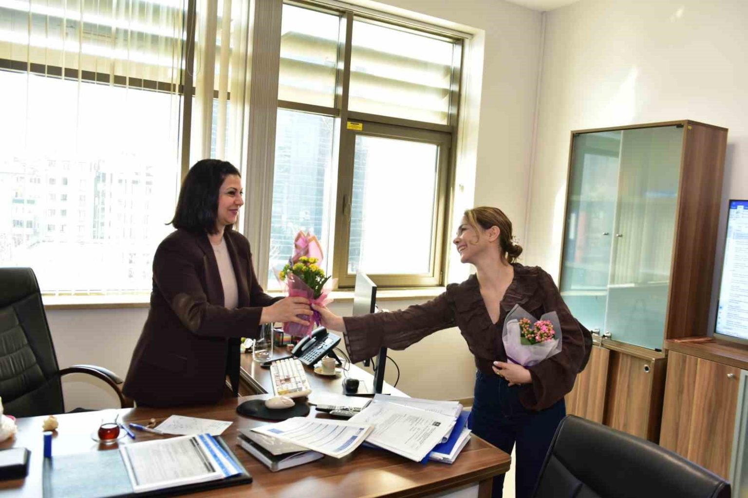 Bursa Büyükşehir Belediyesi Park ve Bahçeler Dairesi tarafından, Büyükşehir Belediyesi Ana Hizmet Binası ve BUSKİ Genel Müdürlüğü’nde görev yapan kadın çalışanlara çiçek hediye edildi. 8 Mart Dünya Kadınlar Günü kapsamında hediye edilen çiçeklerde, “Değerli kadınlar, emeğinizle geleceğimize ışık oluyorsunuz. Biz inanıyoruz ki eşitlik birlikte mümkün. Birlikte daha güçlü, daha adil yarınlara” yazılı bir not da yer aldı.
