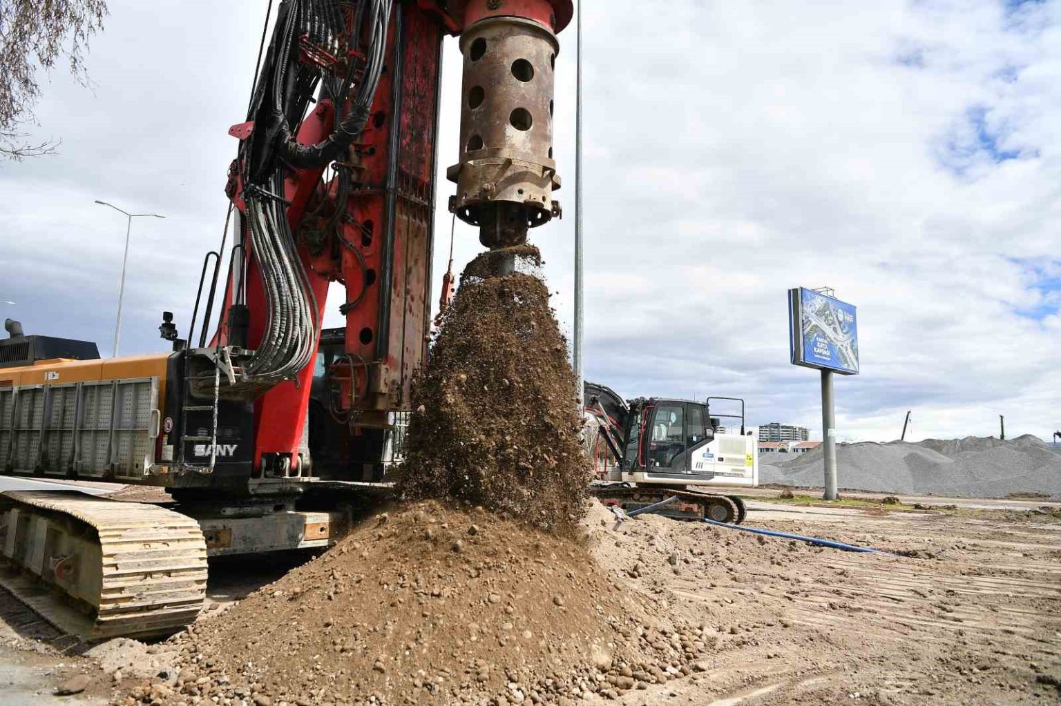Proje kapsamında altyapı güçlendirme çalışmaları çerçevesinde kazık çakma işlemleri titizlikle sürdürülüyor.