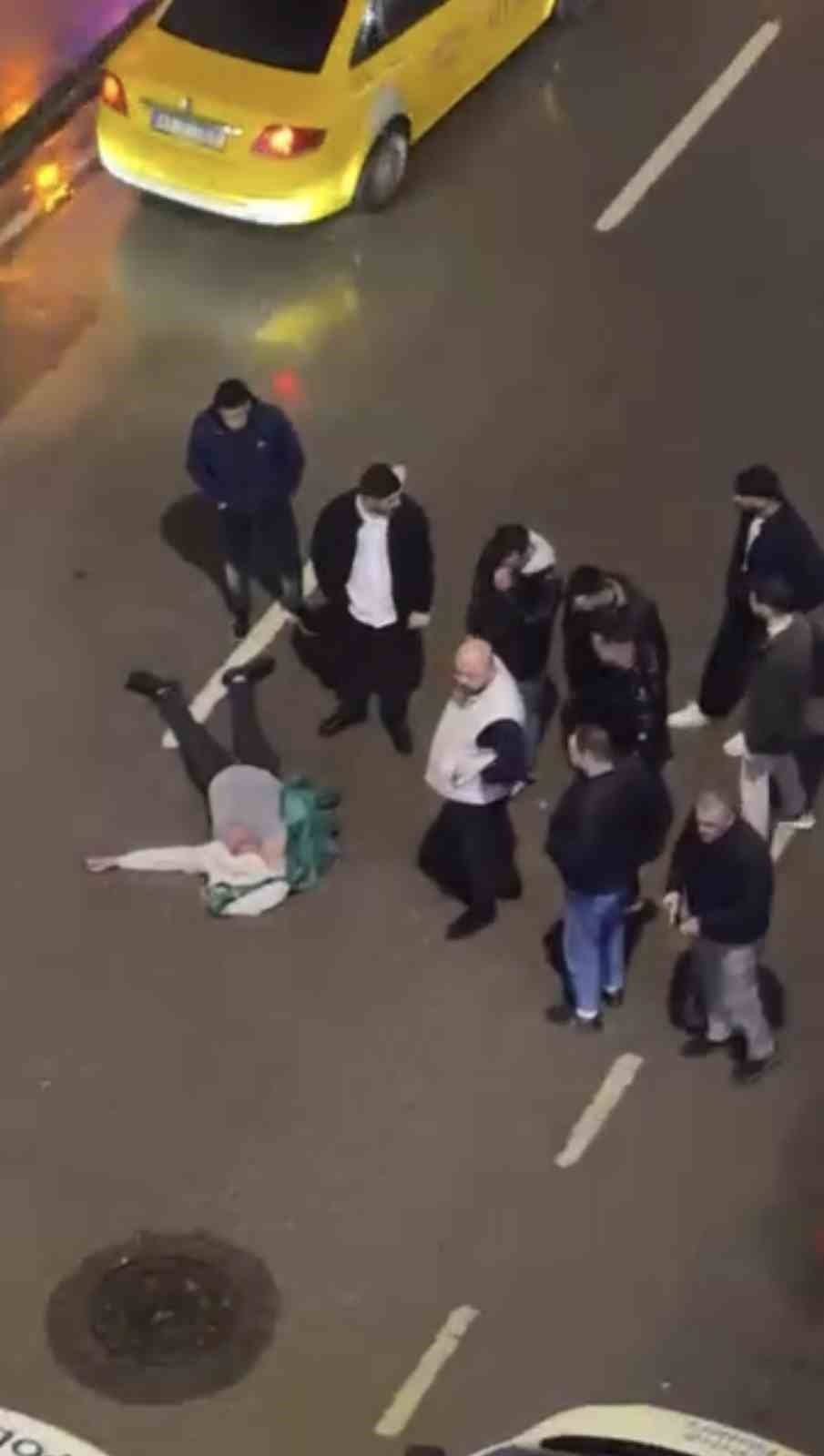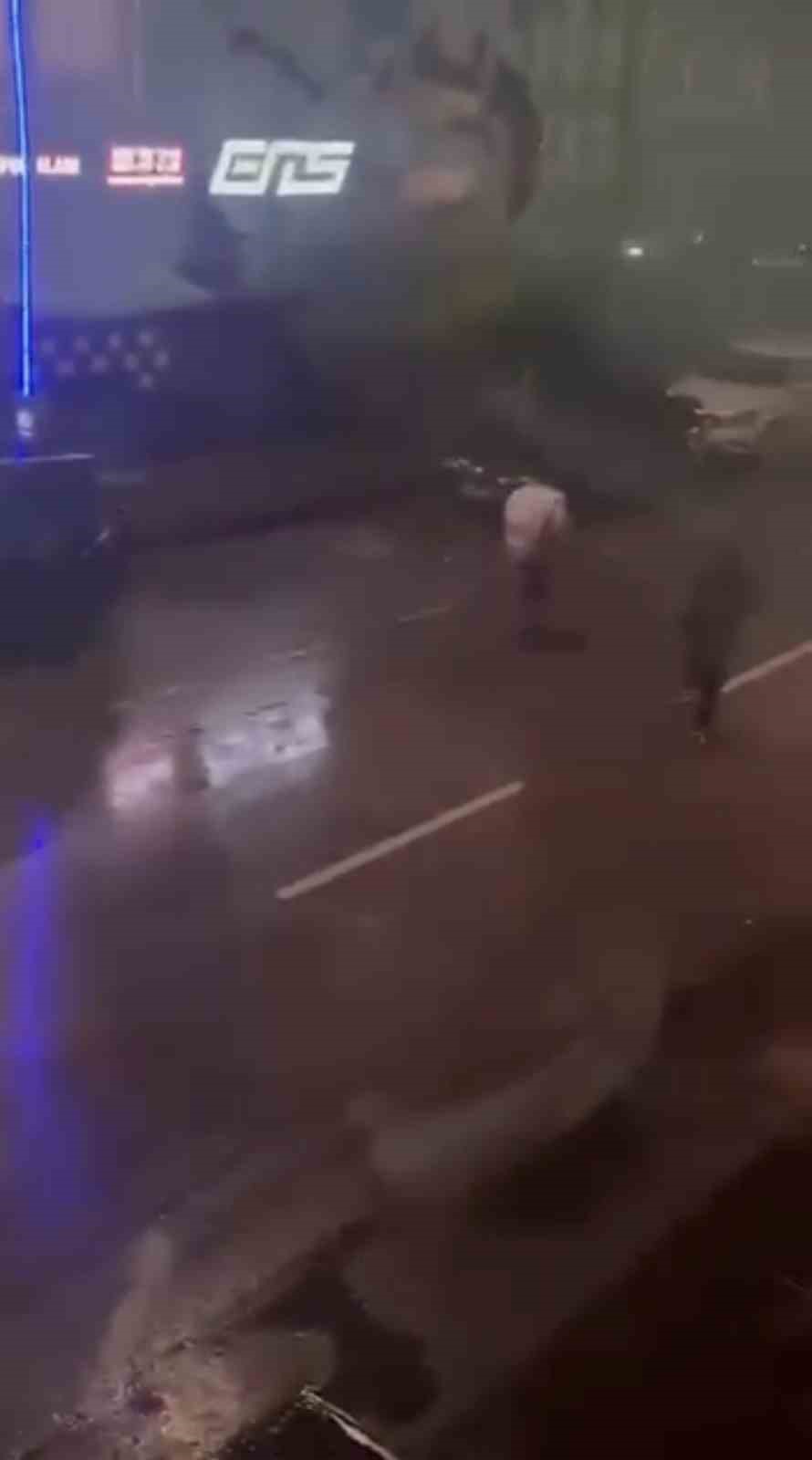 Öte yandan, yaşananlar cep telefonu kamerası tarafından kaydedildi. Ayrıca görüntüde araçların cadde ortasında hareketsiz kalan kişinin yanından geçtiği anlar da yer aldı.