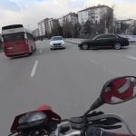 Olay, dün akşam saat 18.00 sıralarında Atatürk Bulvarı’nda meydana geldi. 06 CHA 675 plakalı otomobil, ters yönde seyir ederek trafiği tehlikeye attı. Kazaya davetiye çıkaran araç, o esnada tam karşısından gelen bir motosiklet sürücüsünün kask kamerasına yansıdı. Motosikletli, ters yönden üzerine doğru gelen otomobile korna çalarak tepki gösterdi.