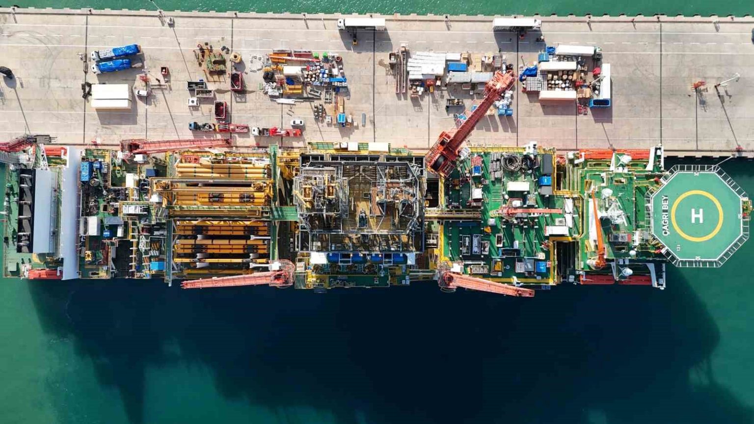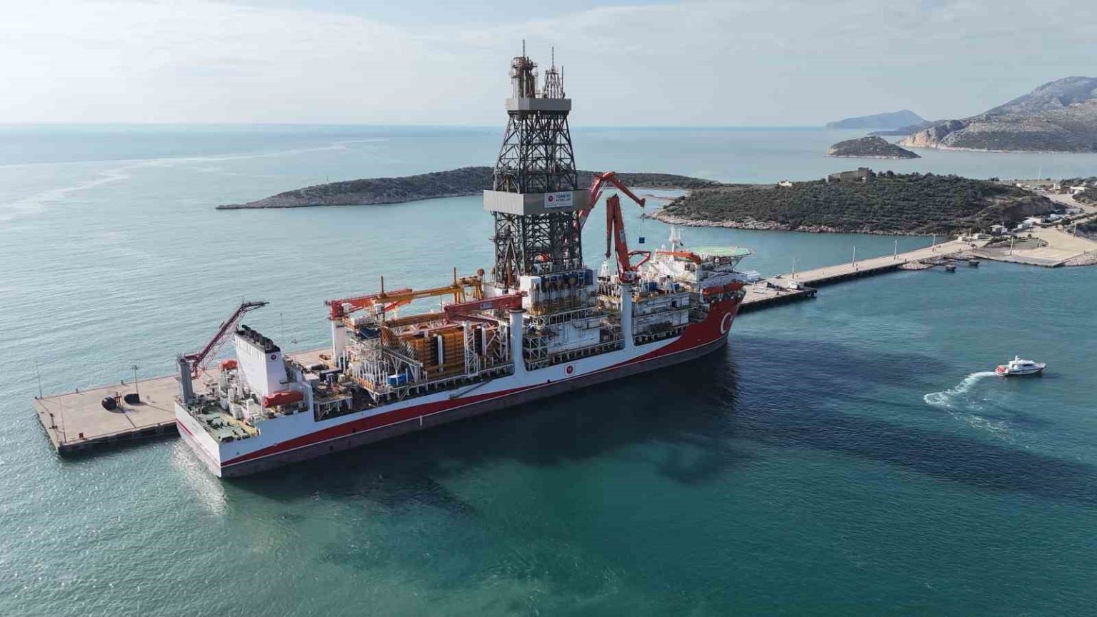 Türkiye’nin enerji filosunun yeni gemilerinden Çağrı Bey Derin Deniz Sondaj Gemisi, bugün Taşucu Limanı’ndan düzenlenen törenle Somali’ye uğurlanacak. Tören öncesi gemi dronla görüntülendi.