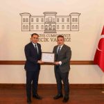 Vali Sözer, hizmetleri dolayısıyla İlkay Türkoğlu’na başarı belgesi takdim etti.