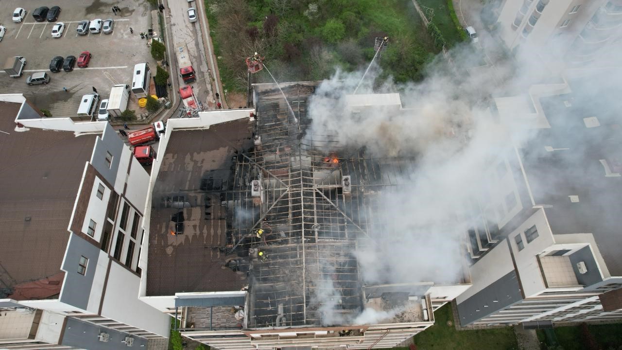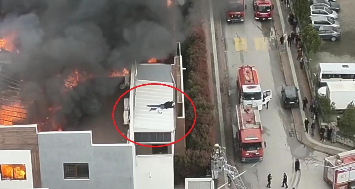 Öte yandan korku dolu anlar dron ile havadan görüntülendi. Görüntülerde çatı katını saran alevler ve gökyüzünü kaplayan yoğun duman dikkat çekti.