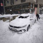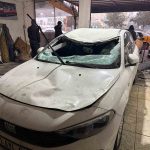 Diyarbakır’da çatıda çözülen kar kütlesi, otomobilin üzerine düşmesi sonucu araç kullanılamaz hale geldi.