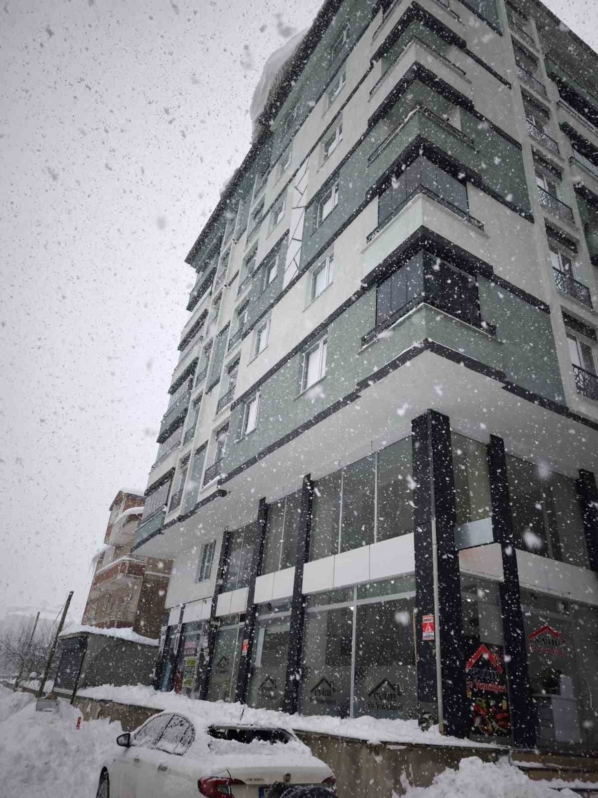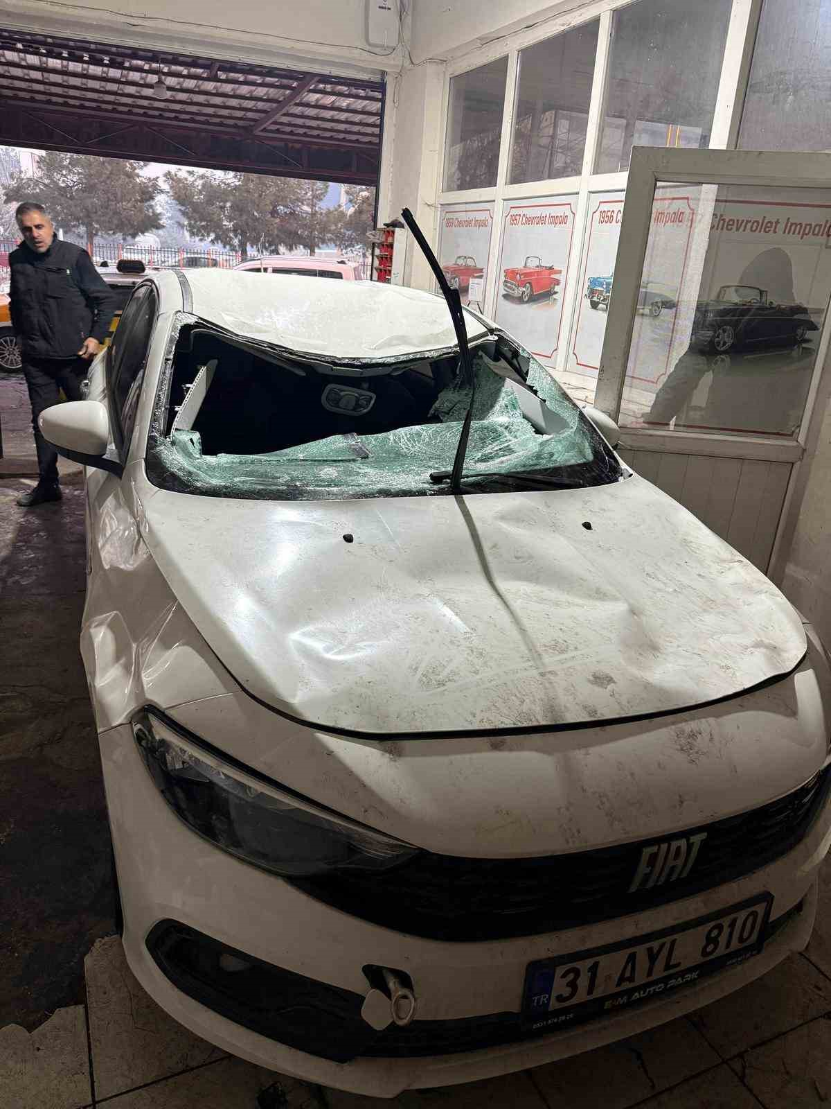 Çatıda çözülen kar kütlesi otomobilin üzerine düştü