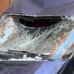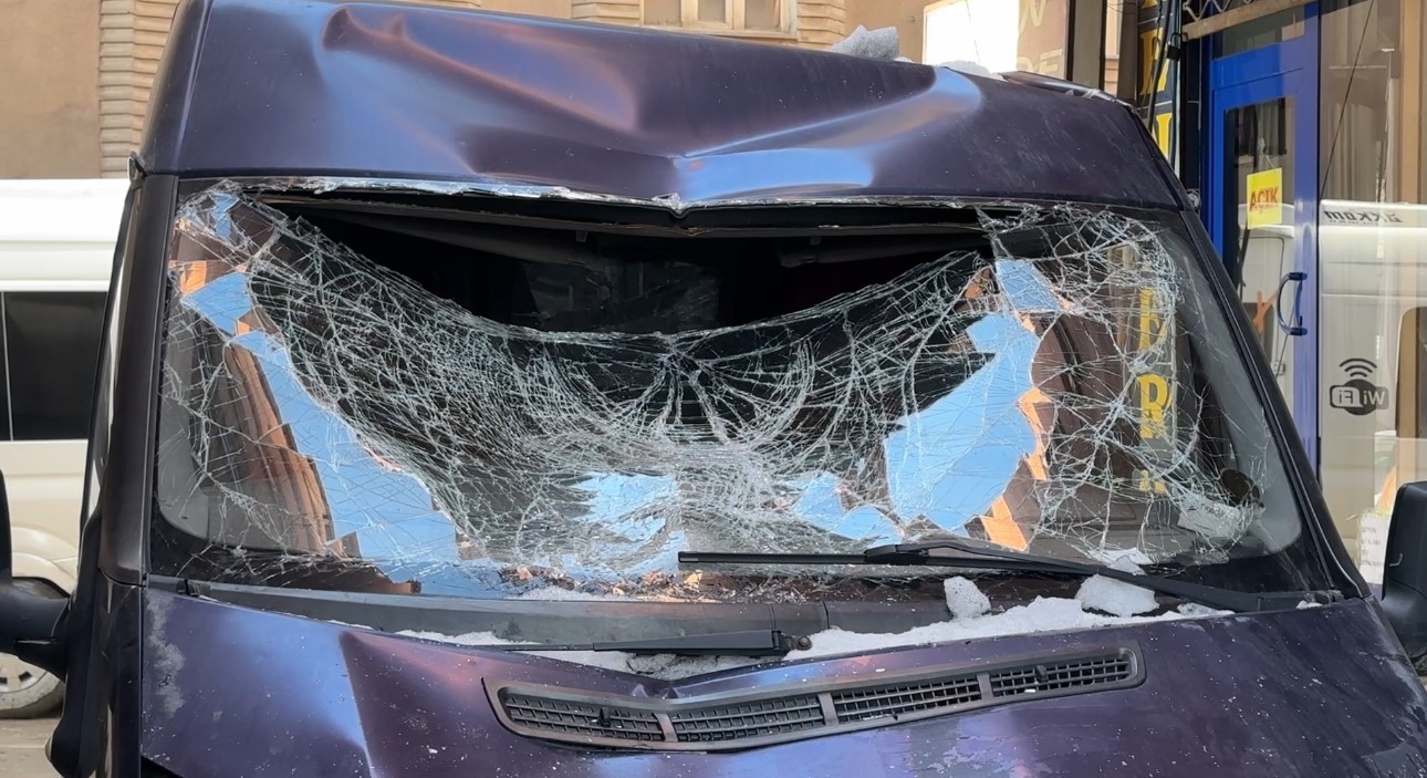 Çatıdan düşen kar kütlesi seyir halindeki minibüse zarar verdi