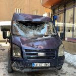 HAKKARİ (İHA) – Hakkari’nin Yüksekova ilçesinde bir binanın 7’nci katından düşen kar kütlesi, seyir halindeki minibüse zarar verdi.