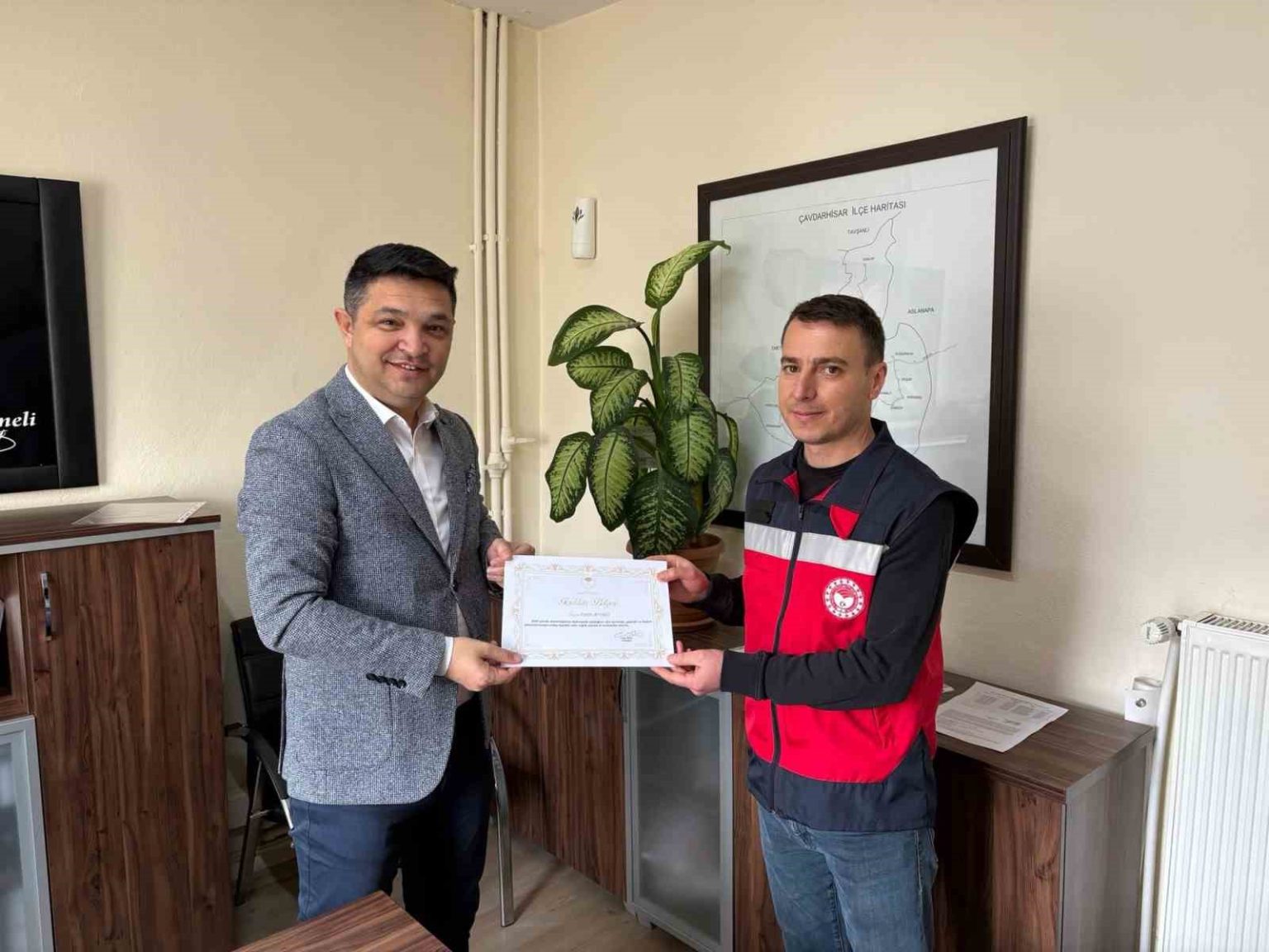 Çavdarhisar’da veteriner hekimlere teşekkür belgesi