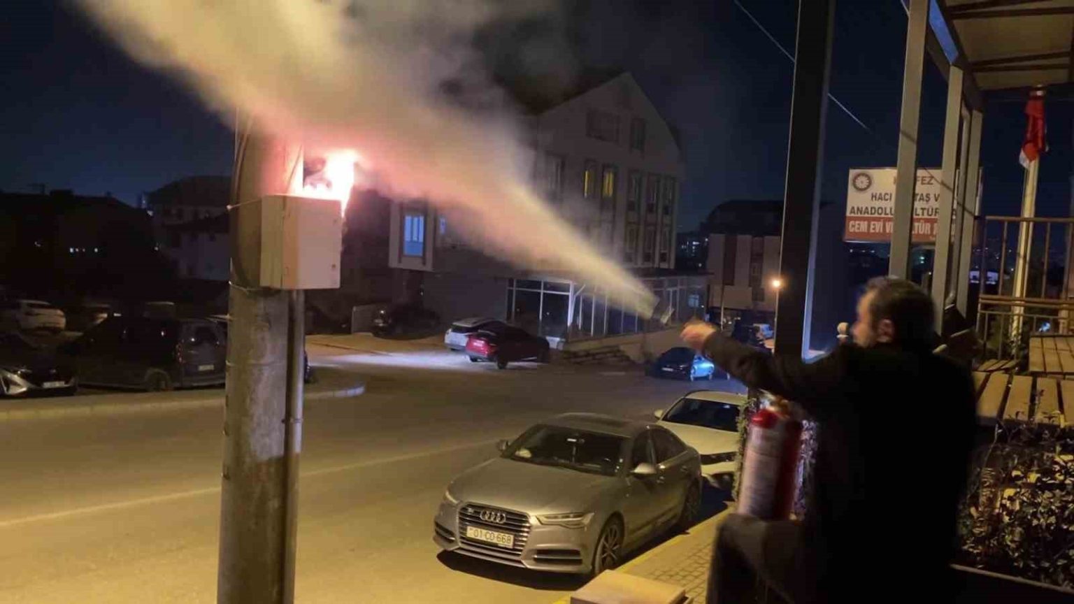 Kocaeli’de tören sırasında cemevinin önünde bulunan elektrik panosunda çıkan yangın paniğe yol açtı. Aralarında vali yardımcısı ve kaymakamın da bulunduğu davetliler cemevinden tahliye edilirken, yangın itfaiye ekiplerinin müdahalesiyle söndürüldü.